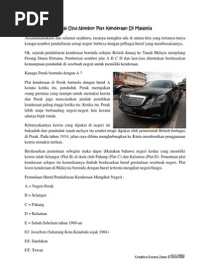 Asal Usul Nombor Plat Kenderaan Di Malaysia Pdf